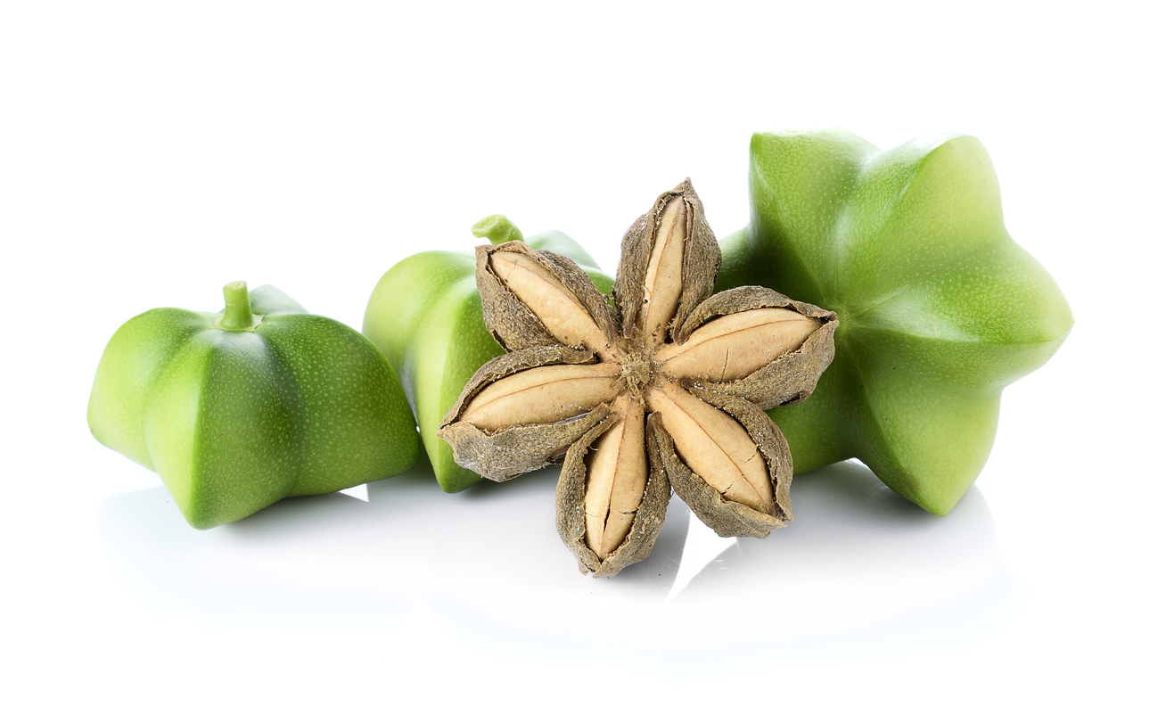 Sacha Inchi on white background, fresh capsule seeds fruit of sacha-Inchi peanut
